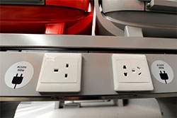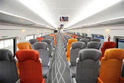 Les compartiments situés à chaque extrémité du train offrent 68 sièges. Chaque siège est équipé d’une liseuse, d’un système audio individuel, d’une prise, d’un dossier ajustable, d’une tablette, d’un porte magazine, d’un repose-pieds et d’un crochet porte cintre.